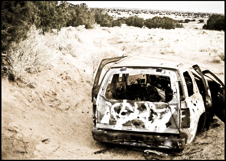 Curiosity got the best of me one day and I took a drive down a dirt road located in the northwest Rio Rancho, New Mexico area. With intentions to take photos of the small canyon that I believed to be at the end, I came across this beauty all by its lonesome. There was another vehicle at the bottom of the canyon that was tossed over like piece of trash. This one seemed to have been given another fate and left for me to look through and photograph. With appreciation and a sense of reverence, I captured it forever; unchanged.