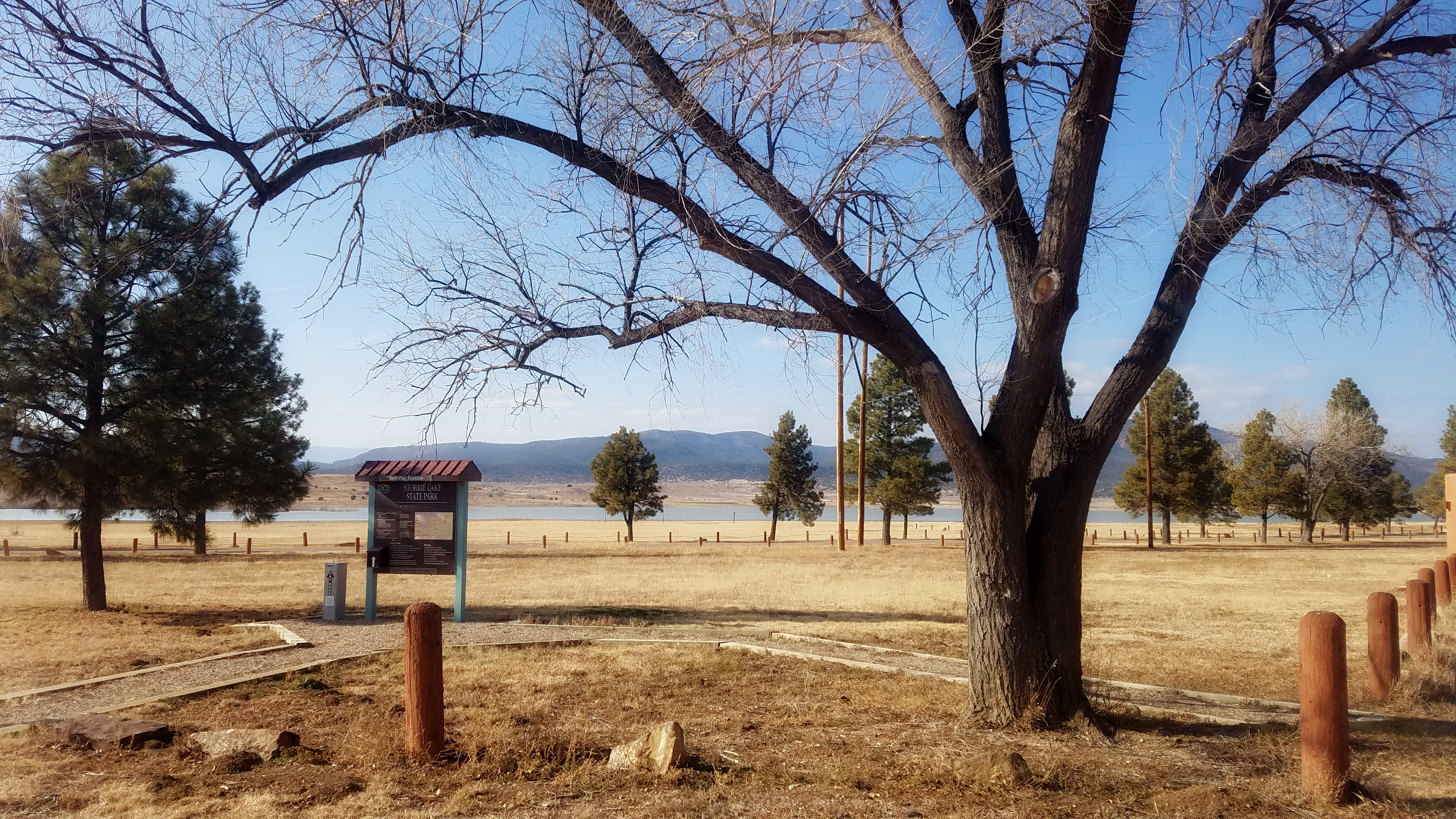 Storrie Lake State Park, NM, US, (elevation 6,600 ft) located 4 miles north of Las Vegas, New Mexico in the Sangre de Cristo Mountains, is an 81 acre park with the lake itself having a surface area of approximately 1,100 acres. Open year round.